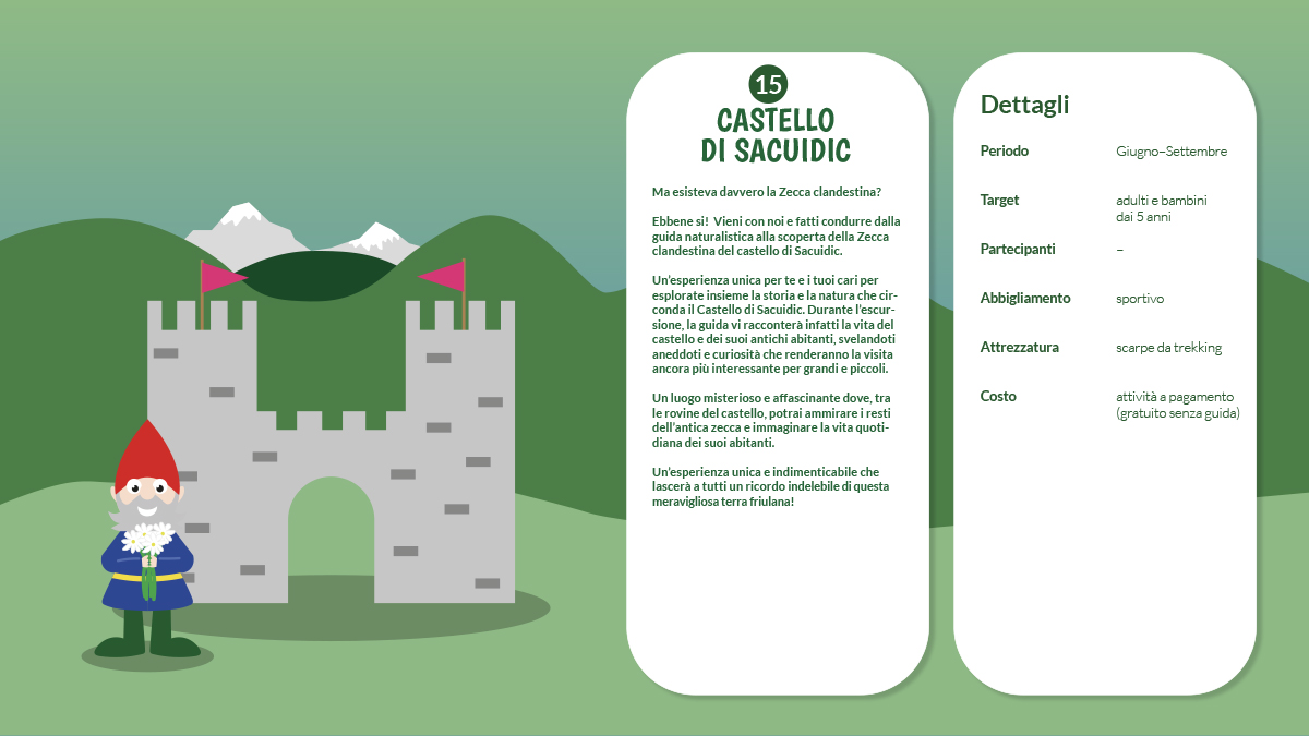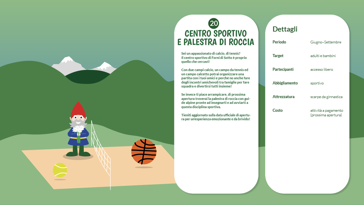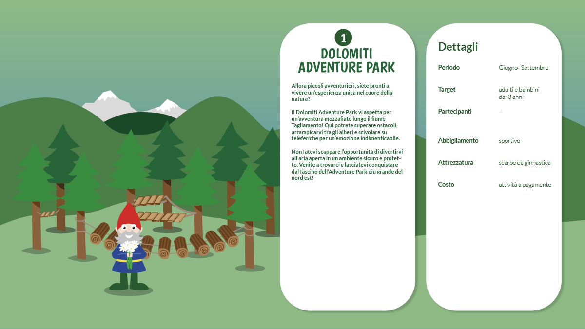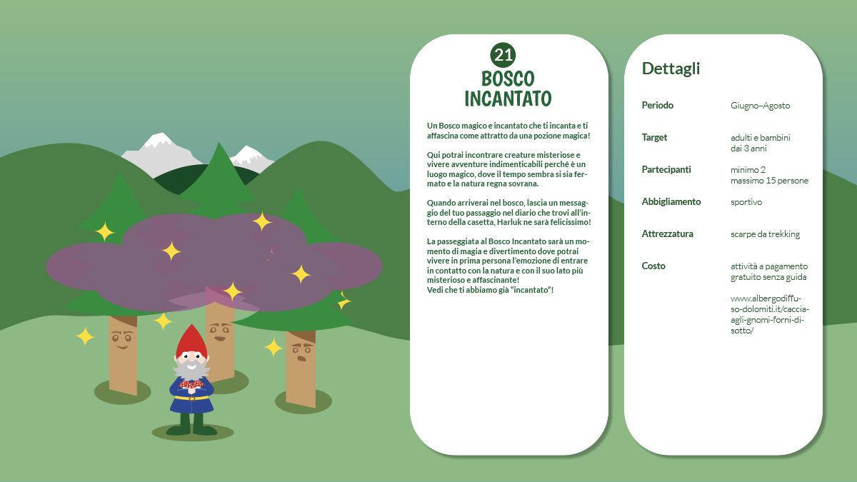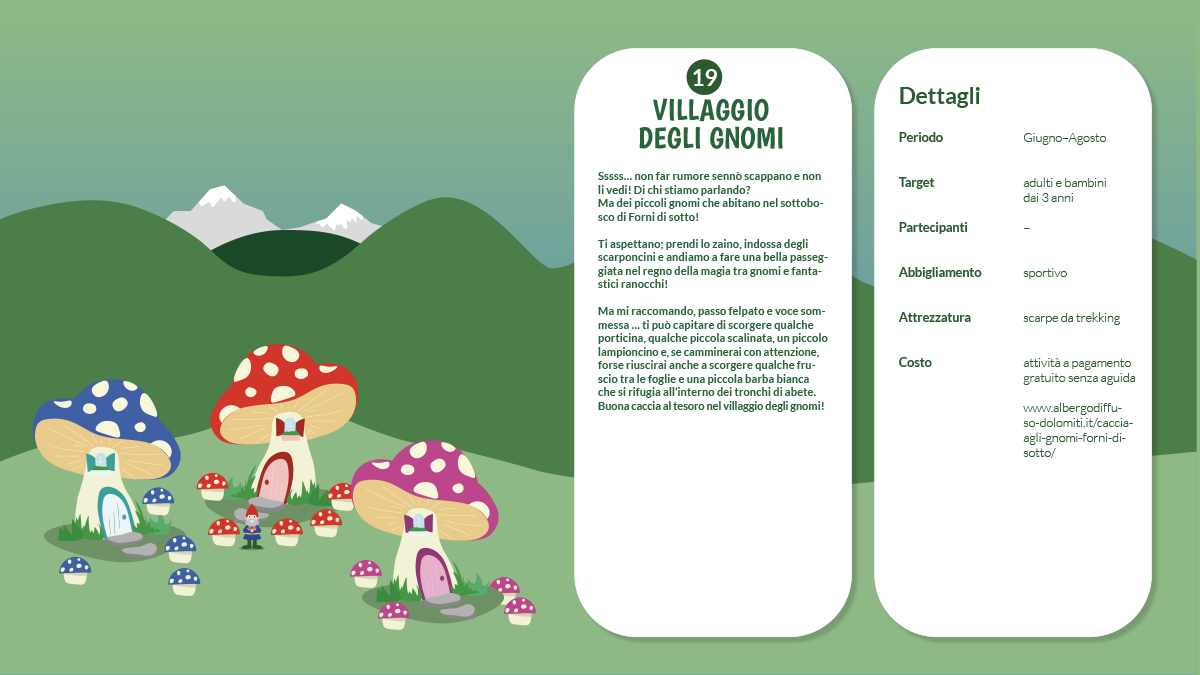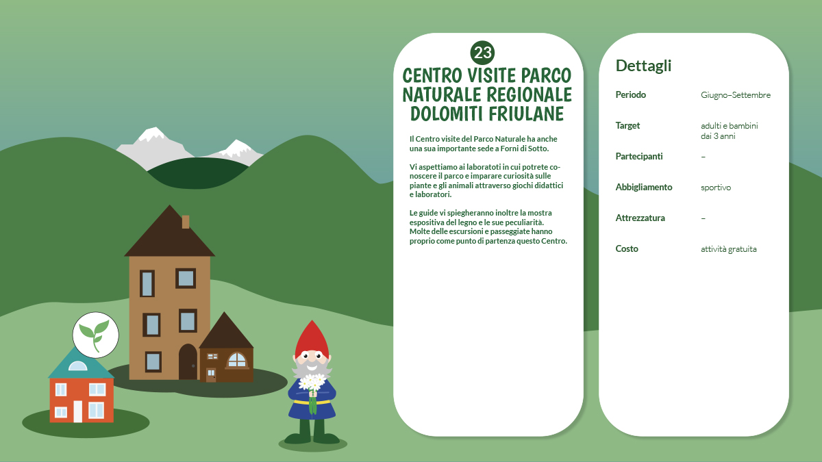 FantaForni è un compendio di “esperienze turistiche ludico-ricreative ed educative” rivolte al target family (bambini dai 3 agli 11 anni). Un Parco giochi e divertimento per i bambini all’aperto, in un ambiente naturale ed incontaminato, per ampliare e valorizzare ulteriormente l’offerta turistica esperienziale ed innovativa a basso impatto.