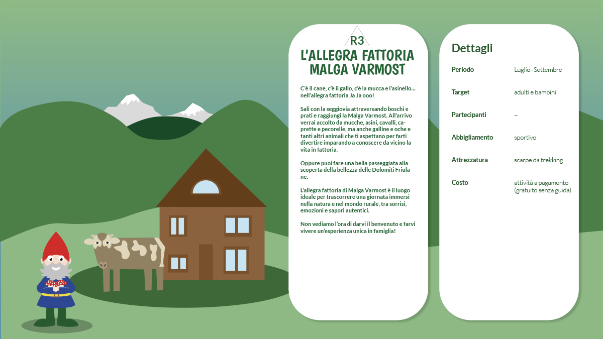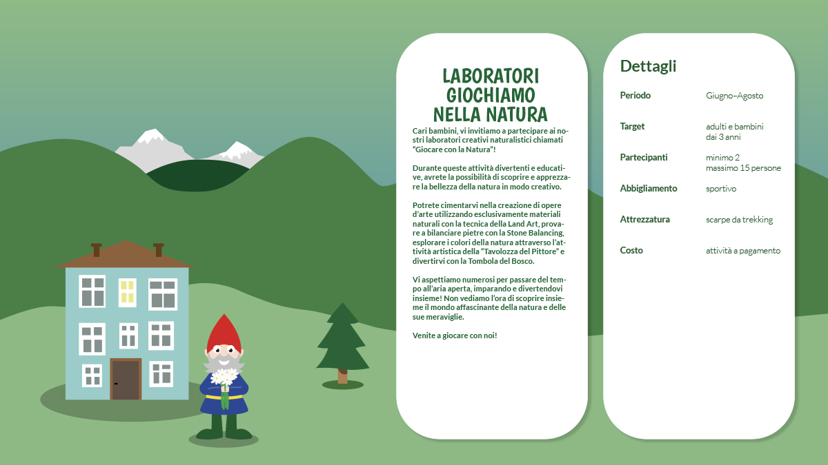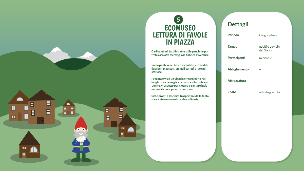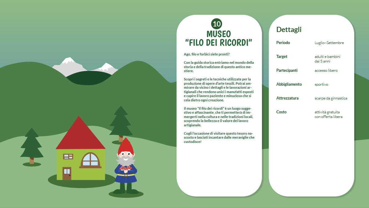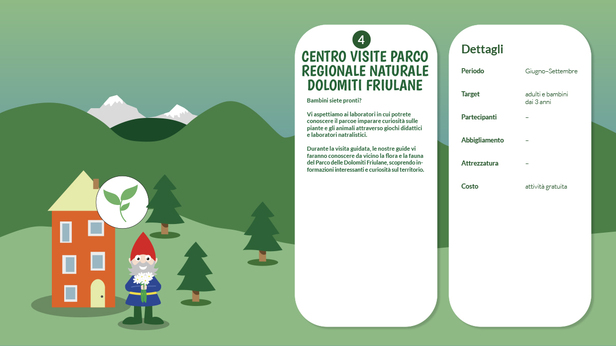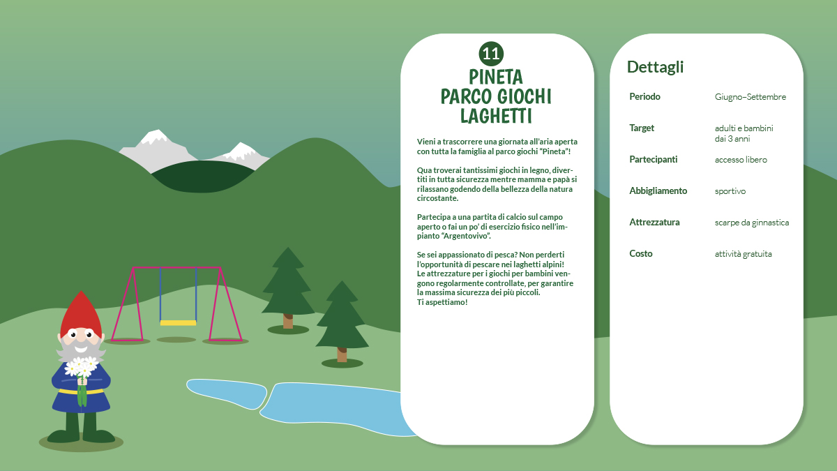 FantaForni è un compendio di “esperienze turistiche ludico-ricreative ed educative” rivolte al target family (bambini dai 3 agli 11 anni). Un Parco giochi e divertimento per i bambini all’aperto, in un ambiente naturale ed incontaminato, per ampliare e valorizzare ulteriormente l’offerta turistica esperienziale ed innovativa a basso impatto.